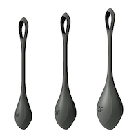 Die abgerundeten Satisfyer Yoni Power 2 bestehen aus weichem, medizinischem Silikon mit einem Edelstahlkern. Yoni Power 2 ist ein eiförmiger Kegelball mit einer leicht spitzen Spitze. Dieses Set besteht aus drei Kugeln mit unterschiedlichem Gewicht, Durchmesser und Länge. Regelmäßiges Kegeltraining kann nicht nur für sensationelle Orgasmen sorgen, sondern auch die Beckenbodenmuskulatur stärken oder Blasenschwäche vorbeugen. Außerdem profitiert auch ein Partner vom Training: Die gestärkte Muskulatur sorgt für ein strafferes und damit intensiveres Gefühl beim Partner. Jeder Kegelball ist mit einer Silikonschnur ausgestattet, um den Ball nach Gebrauch leicht herausnehmen zu können.
